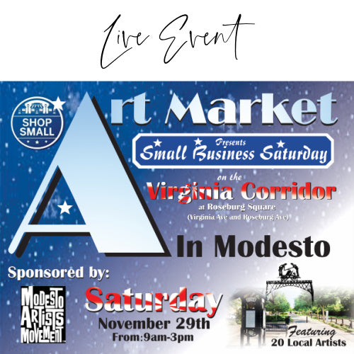 * 11/29: Find special deals just in time for the holidays. Join us at the Art Market on the Viriginia Corridor (at Roseburg Square) 9am-3pm, Modesto, CA.