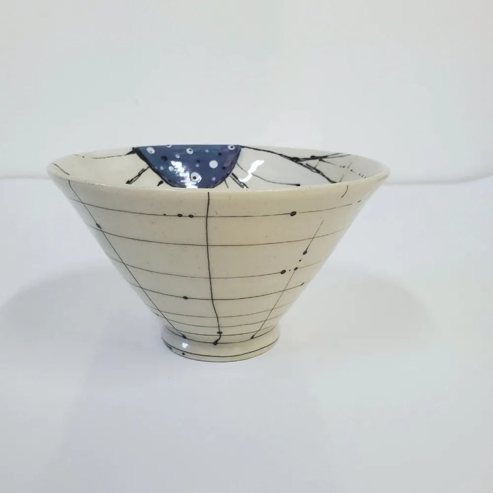 This blue daisy-rimmed bowl is a blend of cheer and tranquility. Hand-painted with a daisy spilling over the rim, it reflects the flower’s joyful spirit and the calming nature of blue—symbolizing peace, trust, and a fresh start. Perfect for snacks or display, it’s a simple reminder to slow down and find joy in everyday moments.