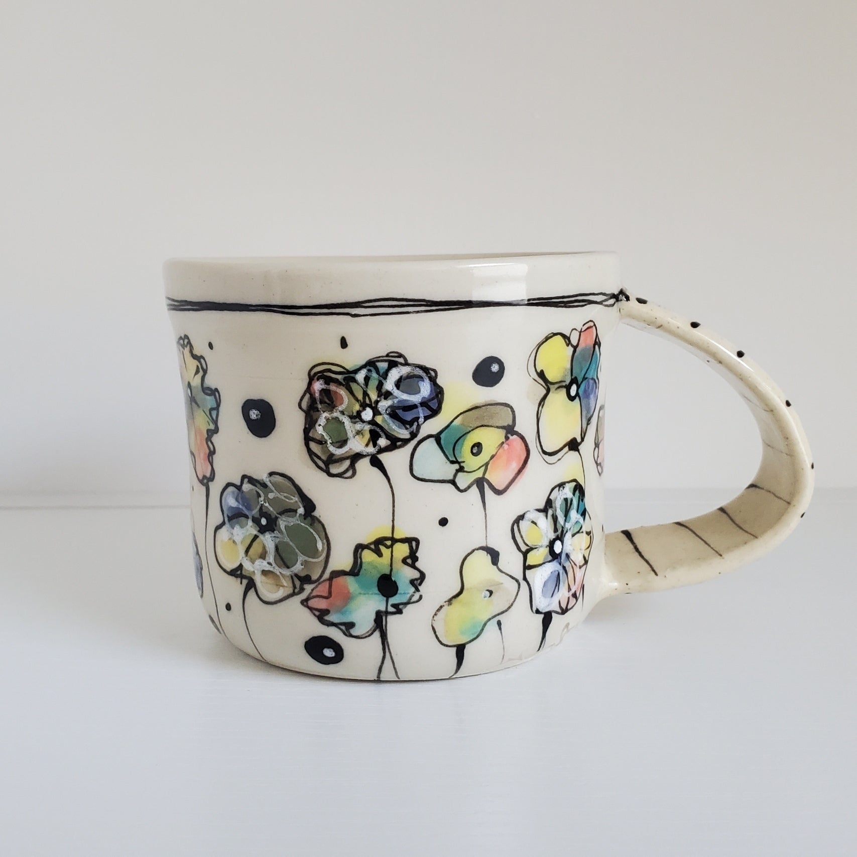 Handmade Ceramic Coffee Mug – Abstract Multi-Colored Flowers – Everyday Light Collection