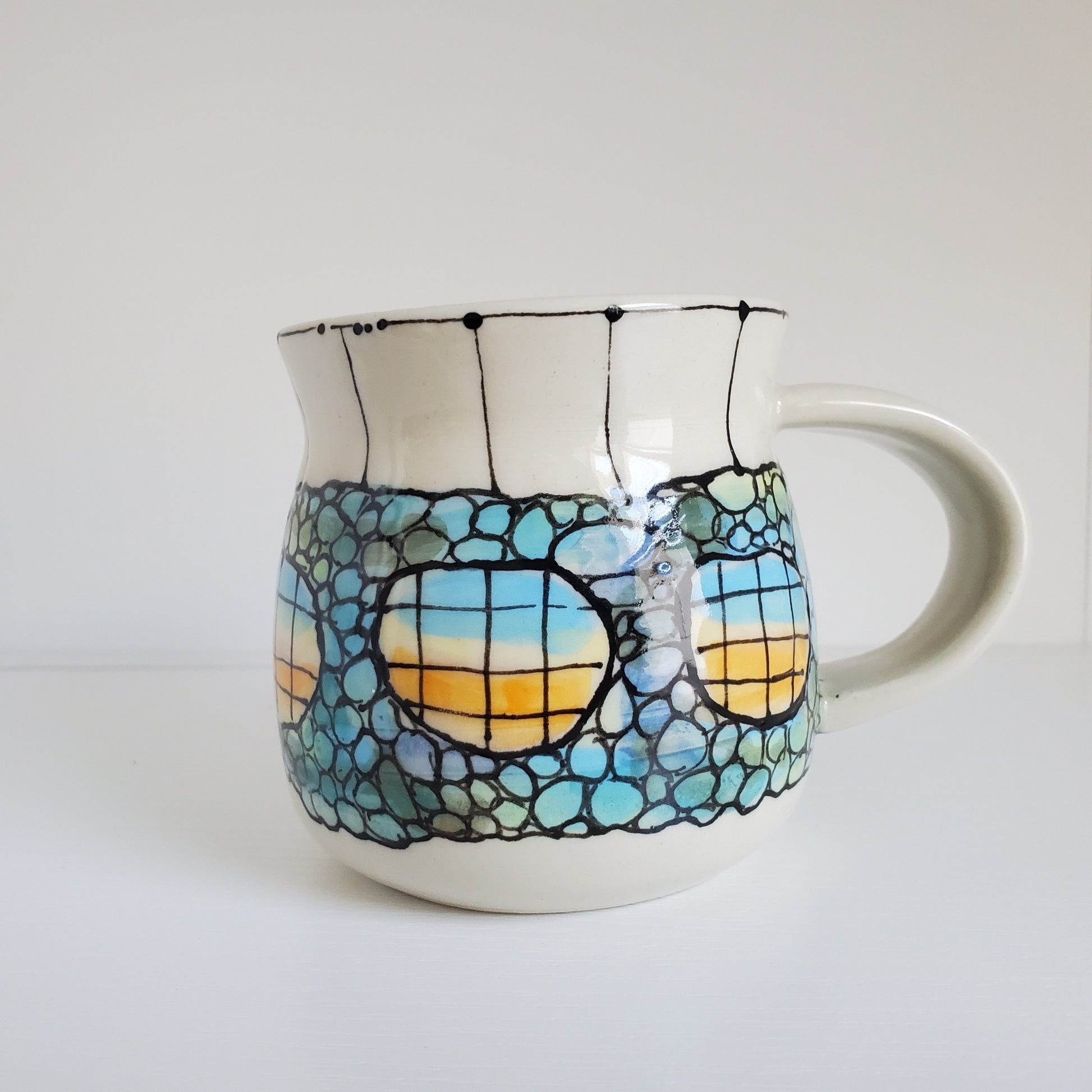 Handmade Ceramic Coffee Mug – Sunrise Bubble Stained Glass – Everyday Light Collection
