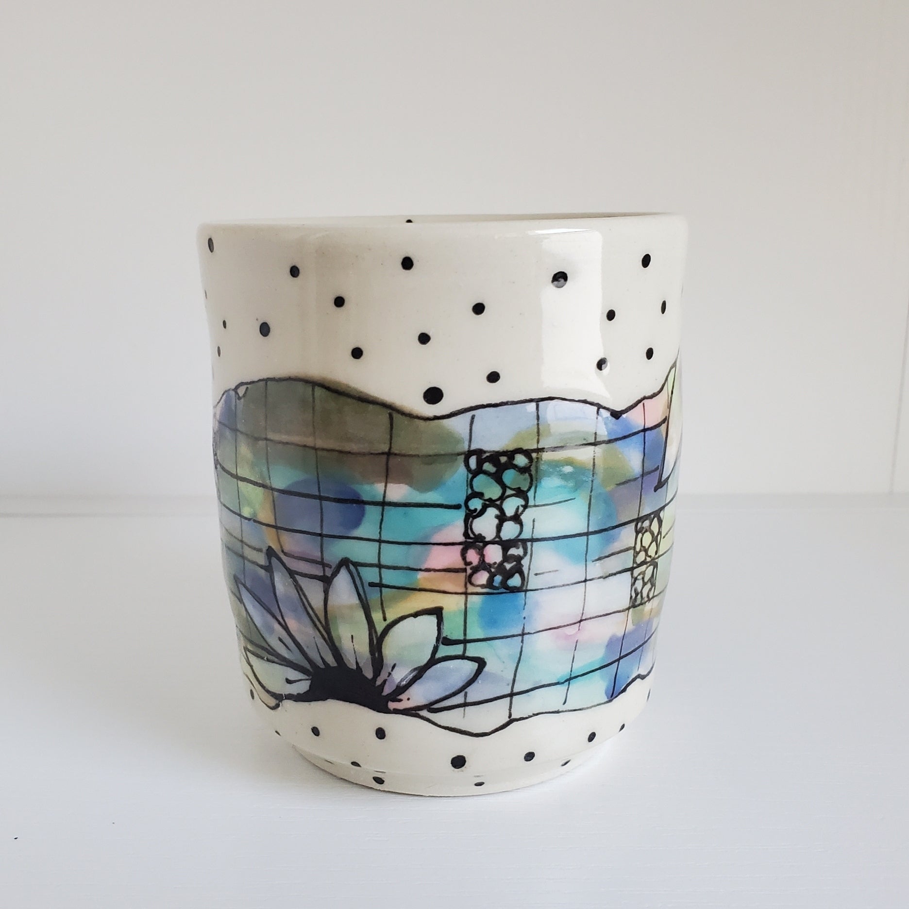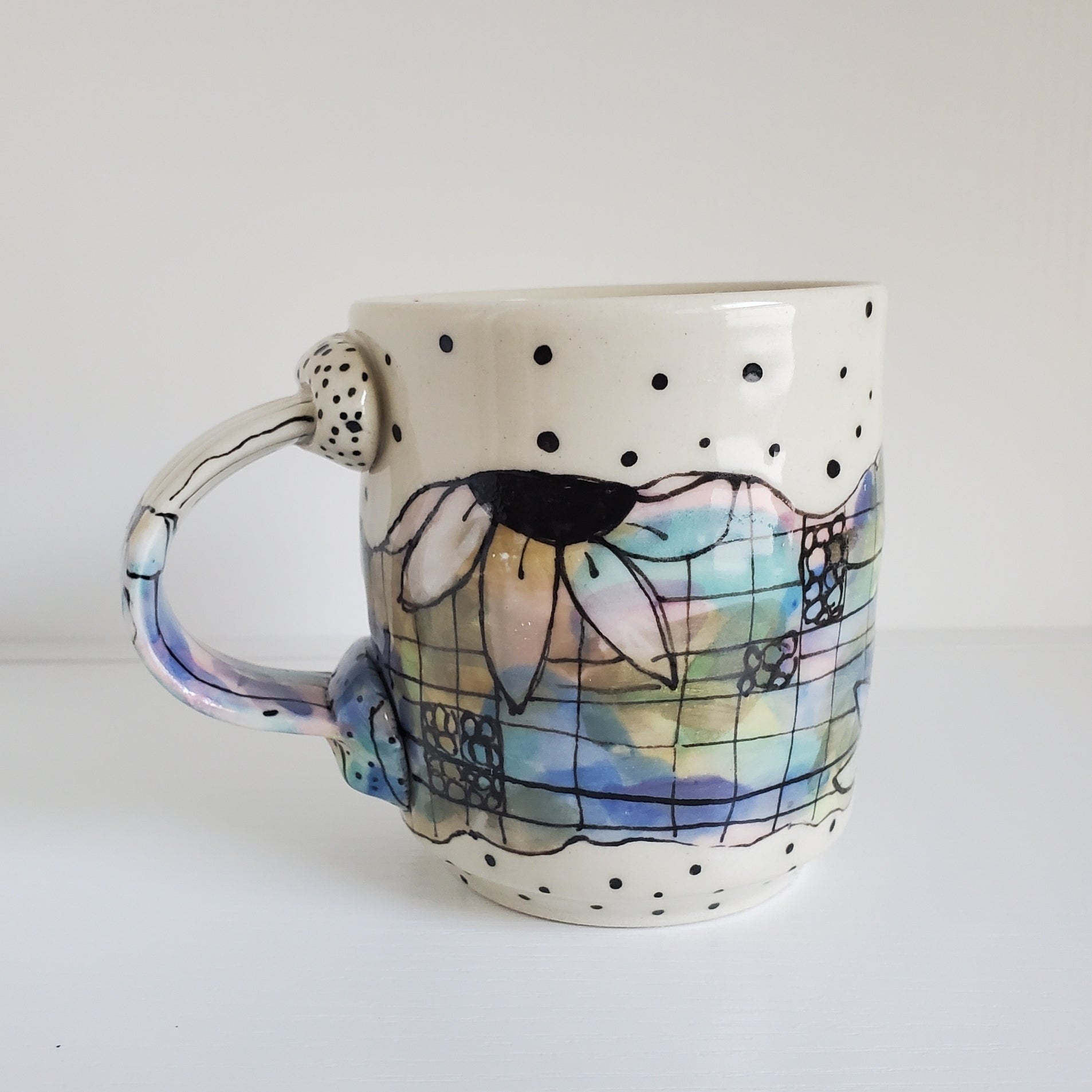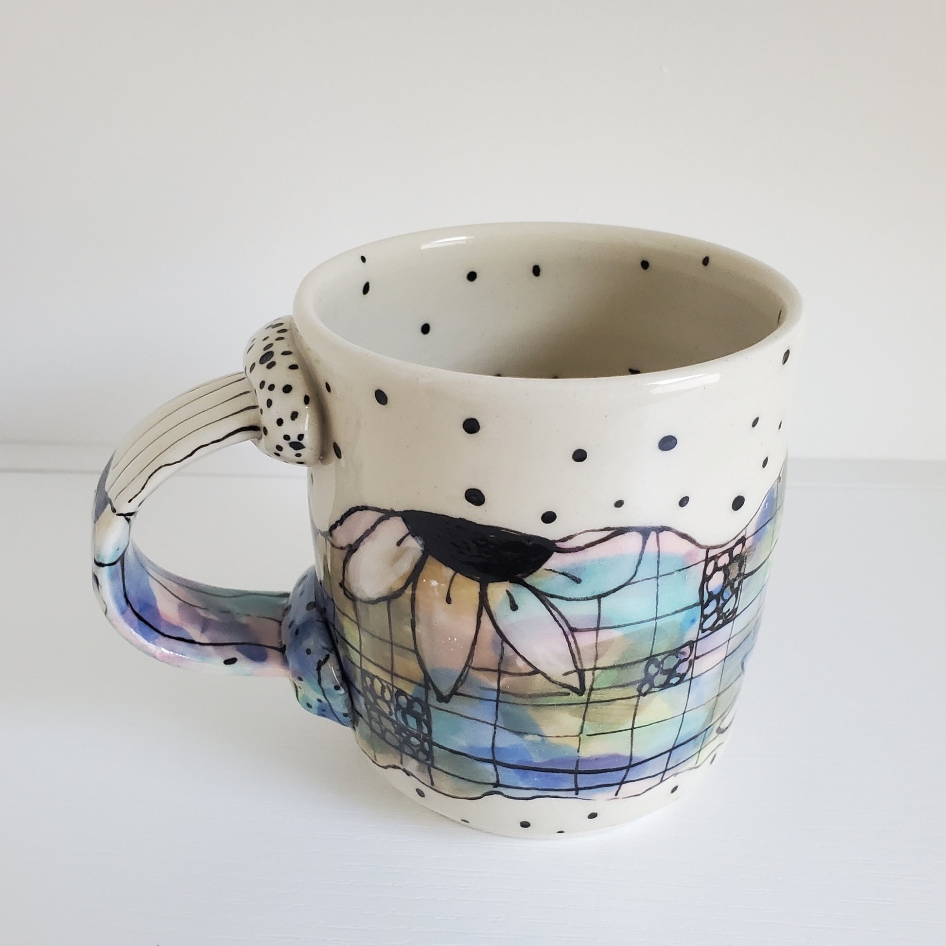 Handmade Ceramic Mug – Colorful Floral Grid – Everyday Light Collection