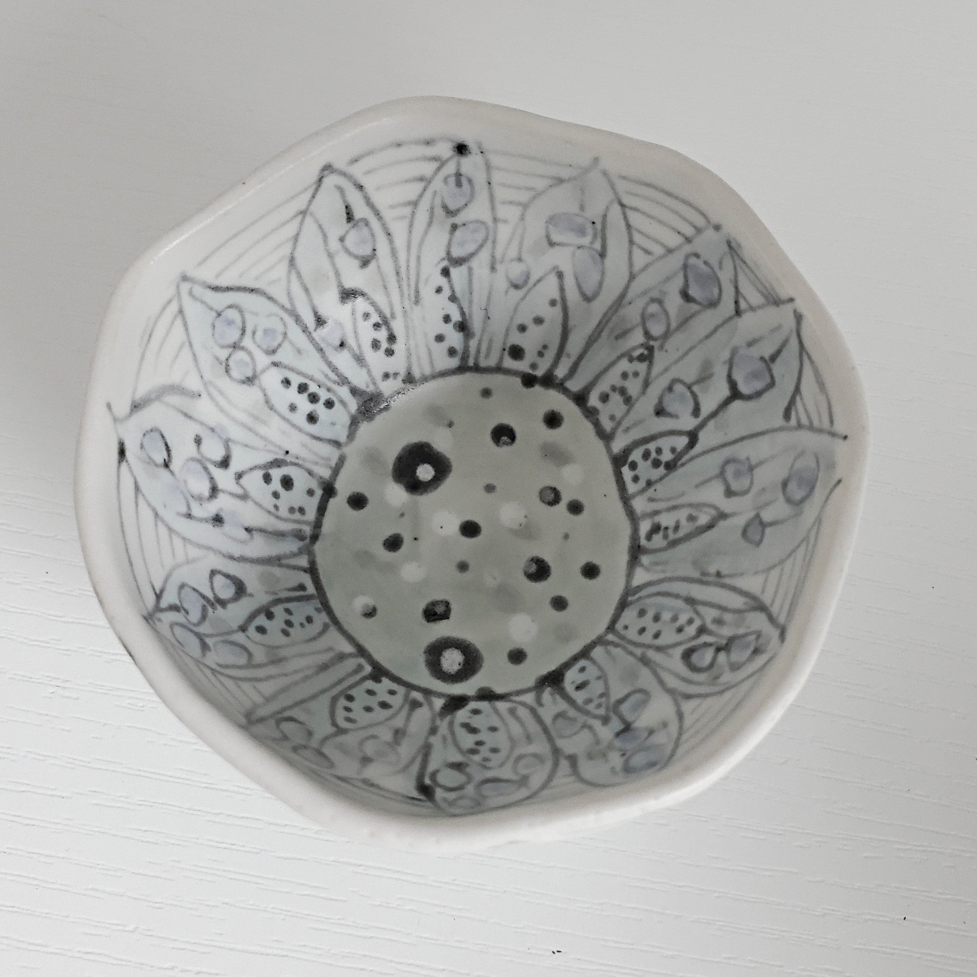 Sometimes happy accidents happen in the studio! These sweet little dishes started as vibrant, detailed designs—but I accidentally dipped them in my satin white glaze instead of the clear I intended. By the time I realized my mistake, they were already coated! What emerged from the kiln are beautifully soft, minimalist treasures with hints of the original colors peeking through like whispers beneath the surface. The result? A velvety-smooth finish and unexpected serenity.