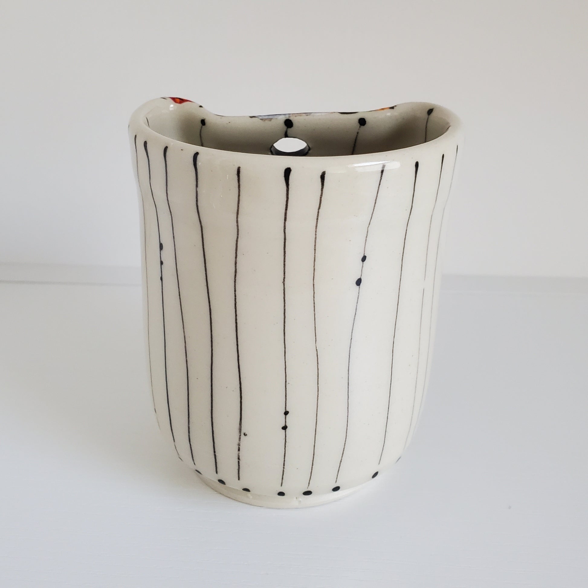 This handmade straw sip cup is designed for fun, easy sipping. The abstract orange bubble pattern adds a playful pop of color, while the cup’s clever design allows you to drink from either side using the included metal straw. Hand-glazed and one-of-a-kind, this cup makes every sip feel special, bringing a little joy to your day.