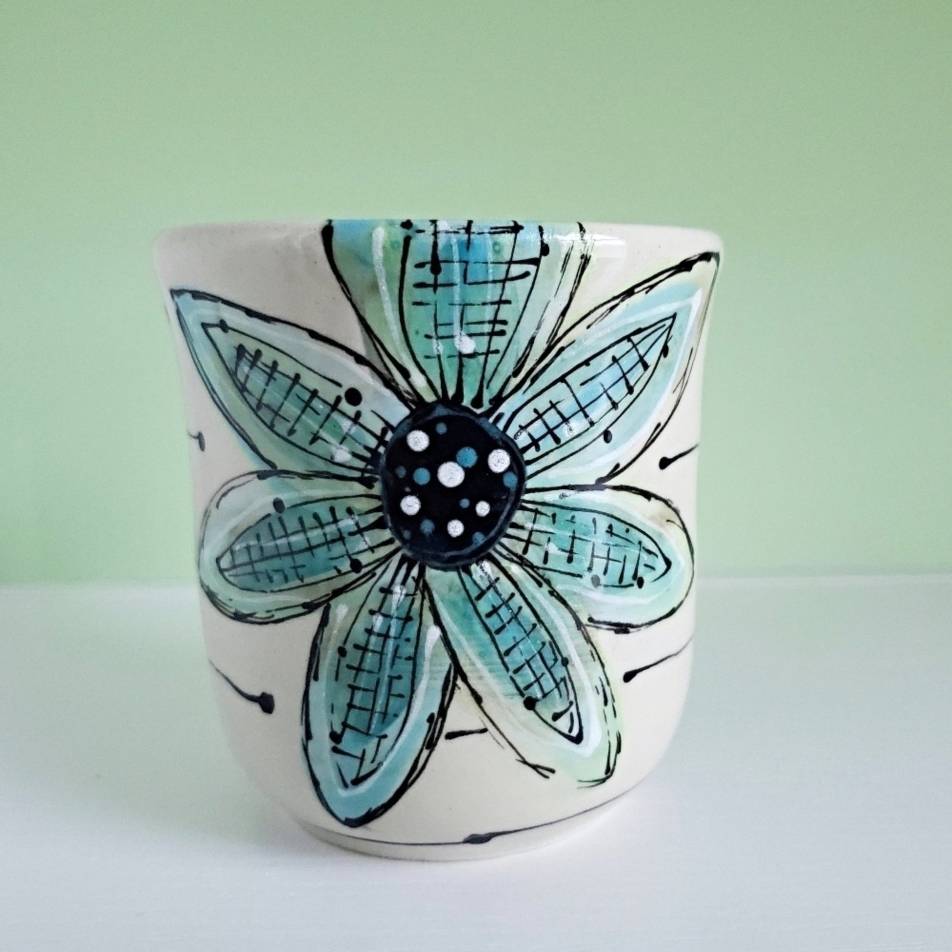 Handmade Stoneware Cup - Playful Turquoise Flower