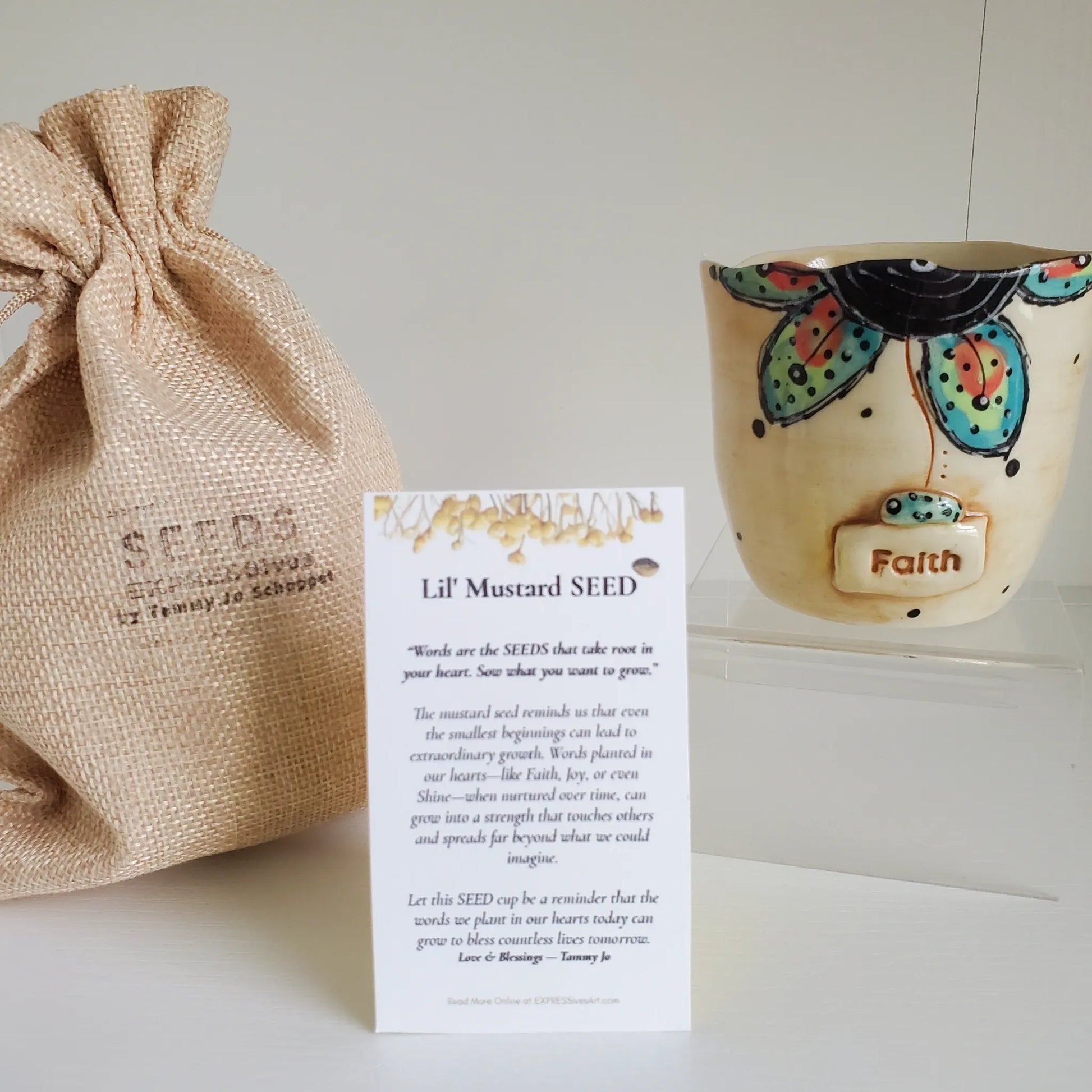*Includes a woven drawstring bag and an encouragement card with the Lil’ Mustard SEED message—ideal for personal inspiration or as a thoughtful gift.