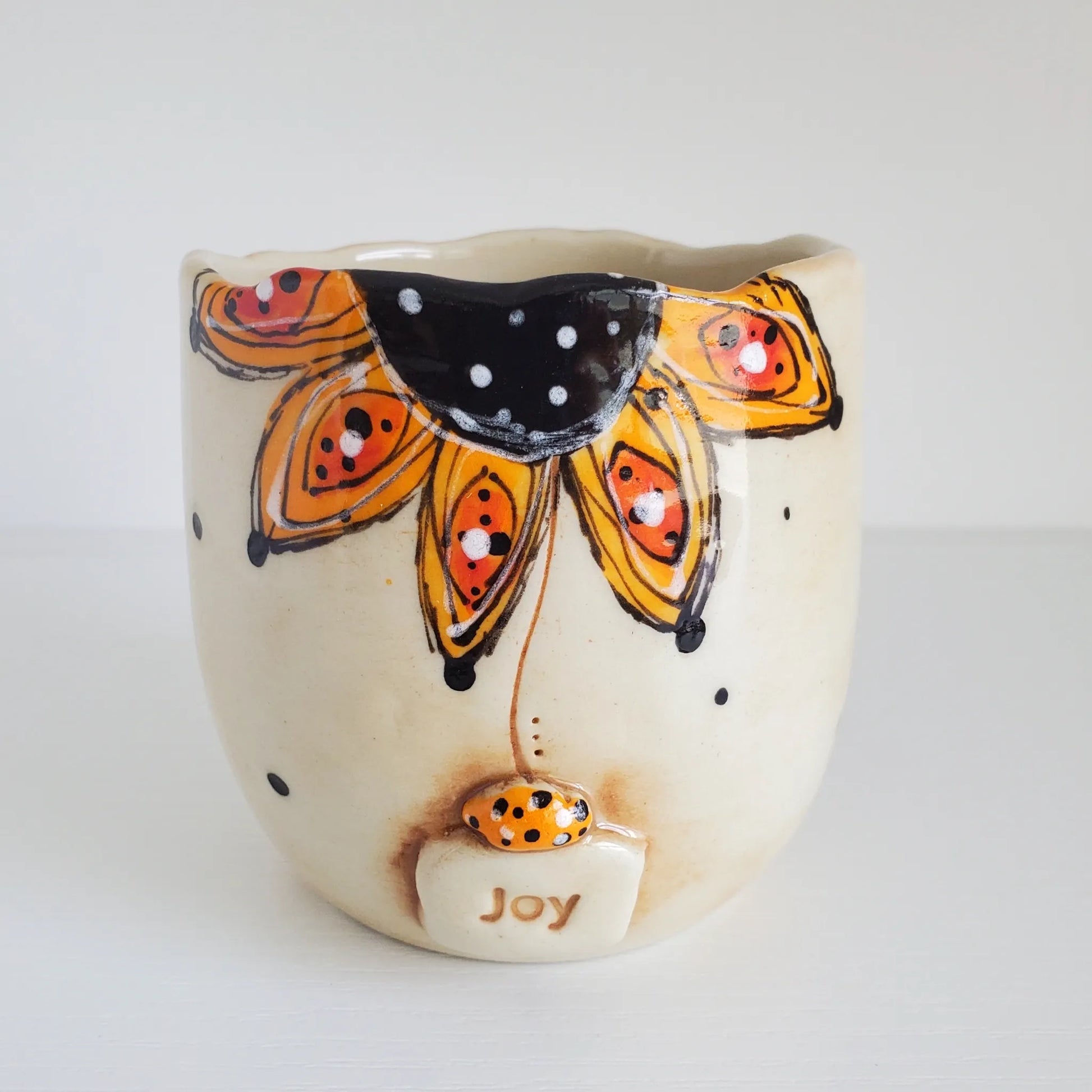 Joy often begins small—sometimes a fleeting smile, a quiet laugh, or a gentle moment of gratitude. This cup is a reminder that even the tiniest spark of joy, when nurtured, can blossom into a lasting sense of delight and peace. At the base of the cup, the word “Joy” rests like the foundation of a heart ready to receive happiness, while a tiny “SEED” sits atop, reflecting the promise that what we plant can flourish.