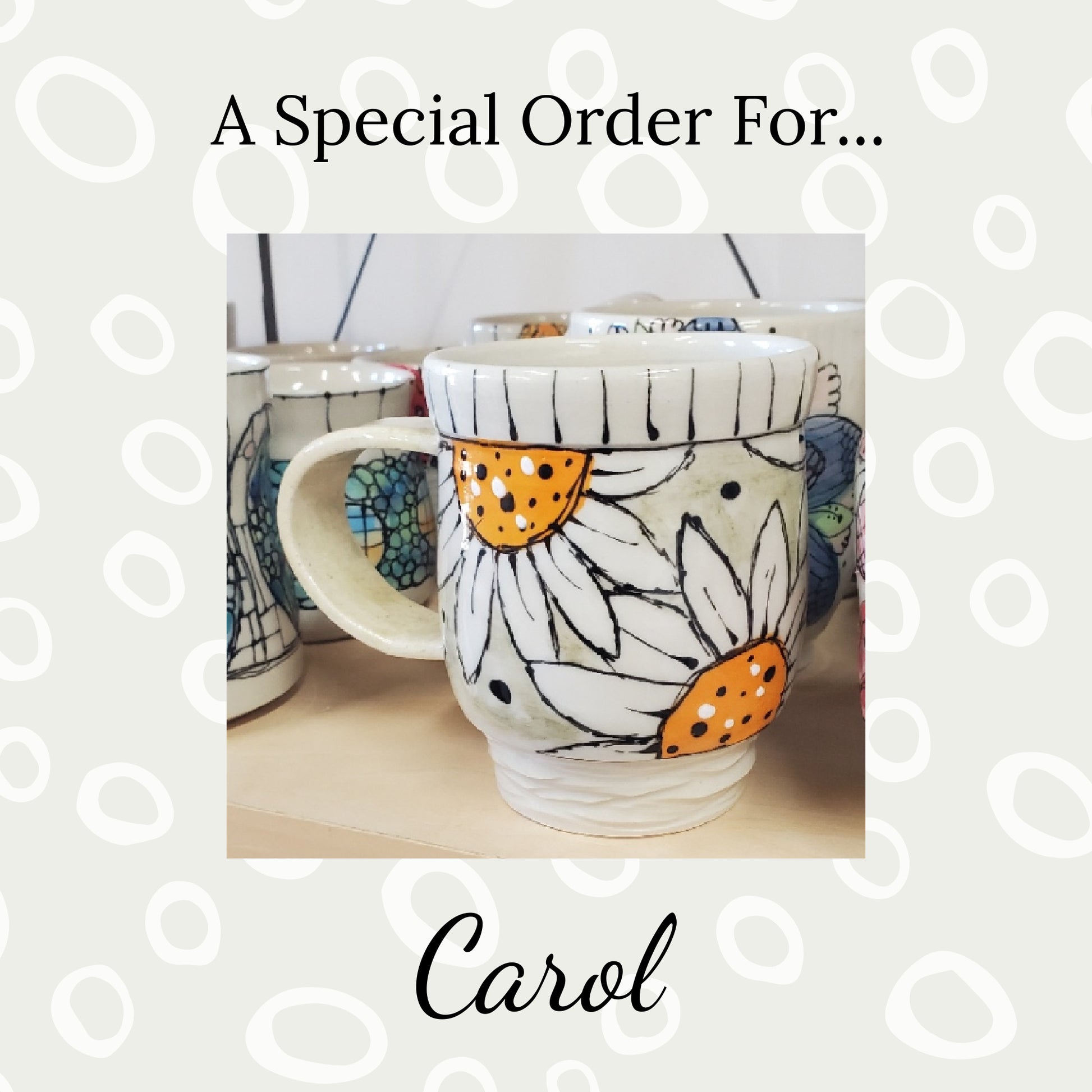 I love this mug so much! It has so much style: the painted flower detail is gorgeous and the hand (the way the cup fits in my hand and has a soft velvet feel to the glaze) it was delivered beautifully and happy with the new cup edition to my collection!