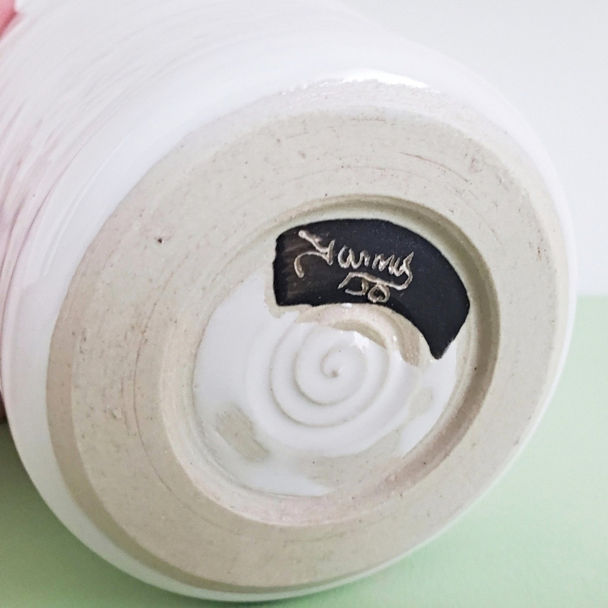 I love this mug so much! It has so much style: the painted flower detail is gorgeous and the hand (the way the cup fits in my hand and has a soft velvet feel to the glaze) it was delivered beautifully and happy with the new cup edition to my collection!